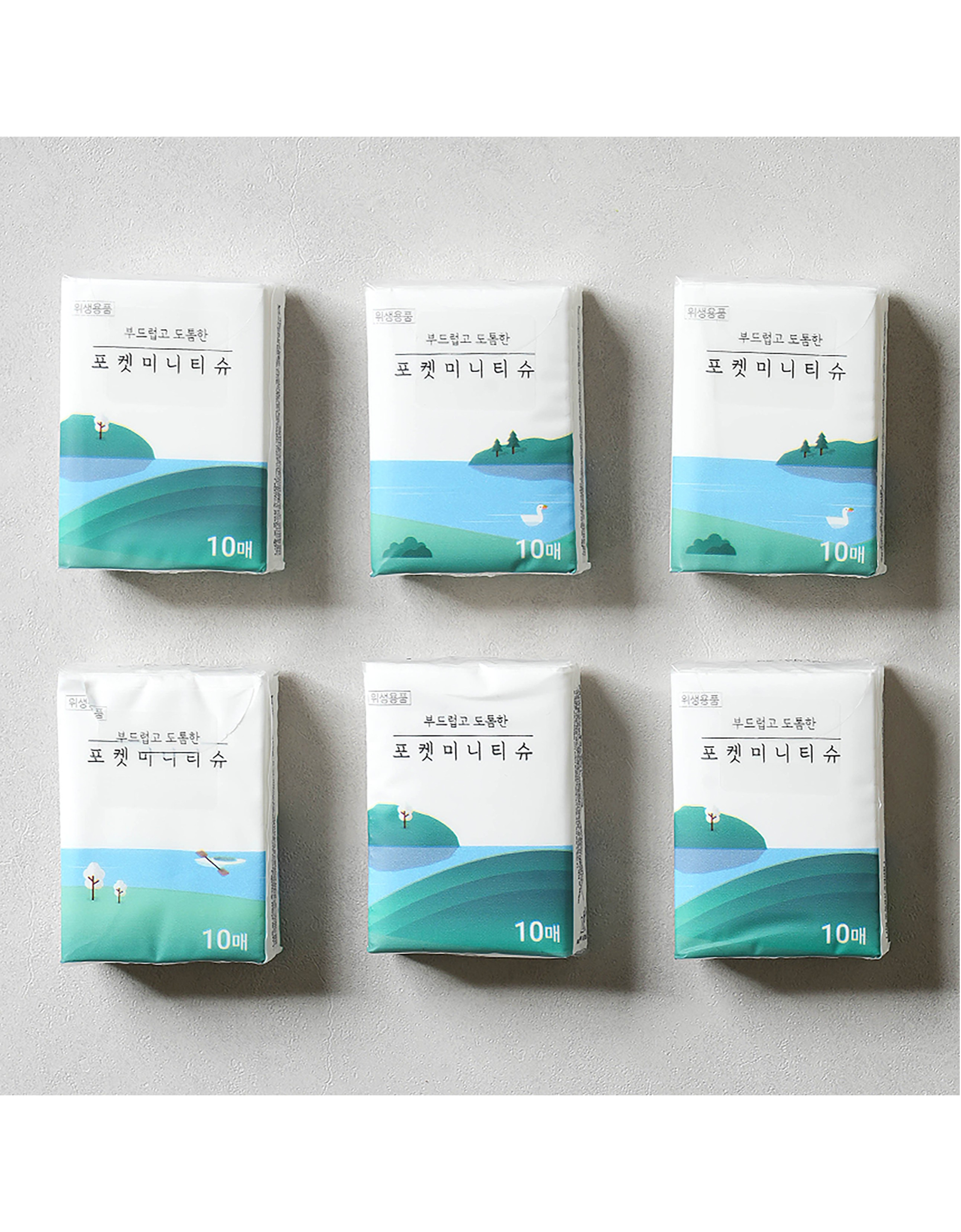 포켓티슈 10매 x 6팩 - 휴대 간편한 포켓 티슈